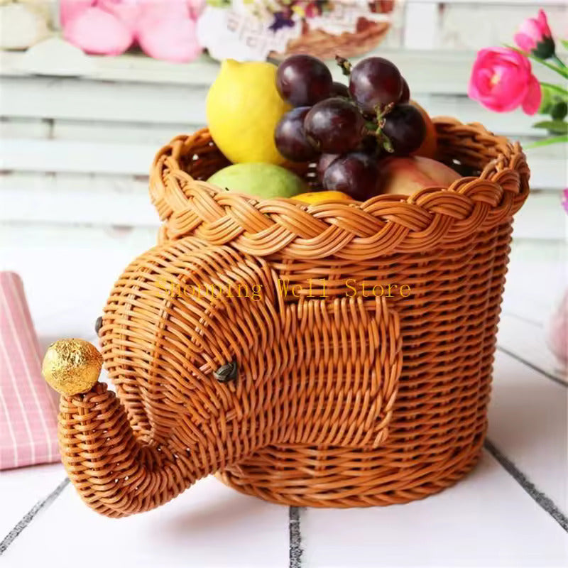 This hand-woven wicker basket features a round, structural shape of an ELEPHANT in dark caramel color. The FUN, textured design enhances the aesthetics of an otherwise plain-looking basket, and it blends easily into any MODERN living spaces and home decor styles. Ideal as a STORAGE basket to keep things clutter-free or even as a POT HOLDER for your favorite